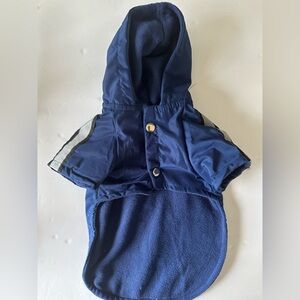 Stylish and comfortable navy blue hooded jacket for small dogs , featuring a patriotic flag patch. Perfect for keeping your dog warm and fashionable.
