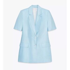 Zara Fitted Short Sleeve Linen Blazer light blue NWT