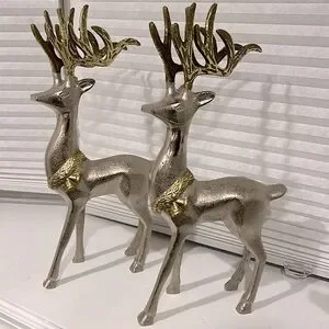 Metal / Standing Deers / W / Wreath / 2 pc / Centerpiece / Christmas / Add a touch of elegance to your holiday decor with these stunning silver and gold reindeer figurines. Perfect for creating a festive atmosphere.