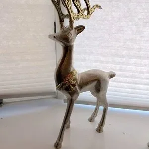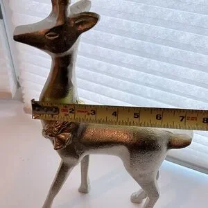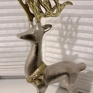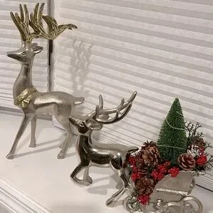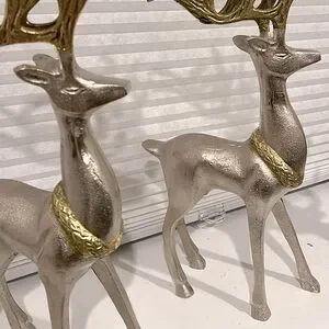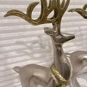 Metal / Standing Deers / Elegant Silver and Gold Reindeer Figurines / 2 pc.