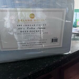 Experience luxury with this Egyptian Cotton Sateen Striped Sheet Set in a soothing blue hue. Perfect for adding a touch of elegance to your bedroom… the picture does nothing for the color. It’s more of Robin egg blue, and it has that satin stripe in the sheets.