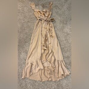 Show Me Your Mumu Samantha Ruffle Wrap Dress | XSmall | Champagne Luxe Satin