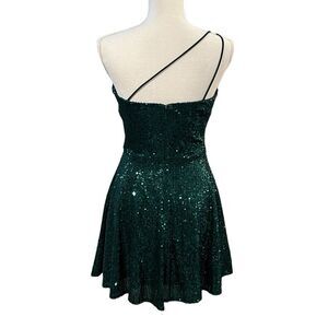 NWT Blondie Nites One Shoulder Green Sequin Fit and Flare Mini Dress
