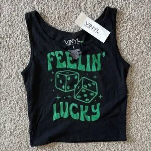 NWT Vinyl Black Graphic “Feelin’ Lucky” Tank Top Sz Large