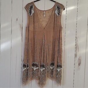 Beaded slip dress. Neutral color scalloped bottom. Free People. Wear as pool cover up or fun brunch dress. Adorable!