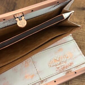 Patricia Nash Cauchy Leather Wallet in a metallic rose and white color with a floral design. New never used