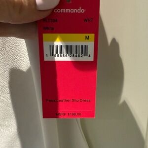 Smooth and stylish white faux leather slip dress. Perfect for layering or lounging.