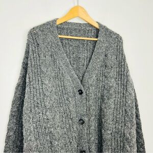 Jenni Kayne Charcoal Alpaca Wool cardigan cable knit open front size small