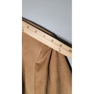 This Lands' End men's size 42 tall tan blazer sport coat jacket is made from corduroy fabric with elbow patches, featuring a four-button sleeve, notch lapel, and single-breasted front button style. The jacket has a solid brown color and a vintage theme, making it suitable for various occasions including parties, casual wear, and business meetings. The jacket is crafted in the United States and is designed for regular fit, with a single vented back and polyester lining for added comfort. Perfect for adding a touch of hipster or grandpa style to your wardrobe.