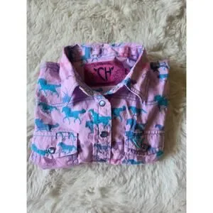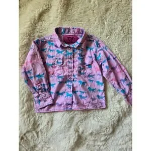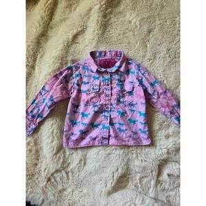 Cowgirl Hardware Pink Colorful Ombre Horses Pearl Snap Western shirt size 2t