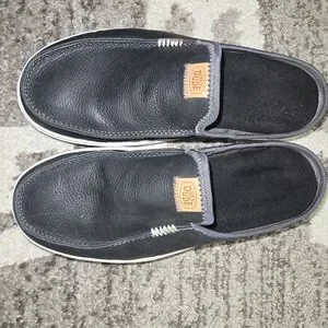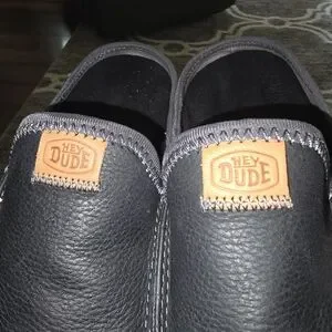 Womens Hey Dude Slides. Black. Footie worn over insert both times I wore them. Size 8, but they run big in my experience. Easy a nine. Just to big on me.Stylish and comfortable womens slip-on shoes in black. Perfect for casual outings.