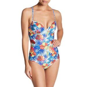 YMI Hawaiian Tropical Floral Racerback Push Up Cap One Piece Swimsuit