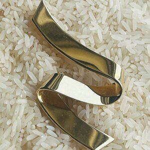 Vintage Monet Ribbon Style Zig Zag Gold Tone Pin Brooch