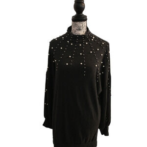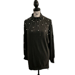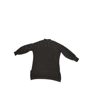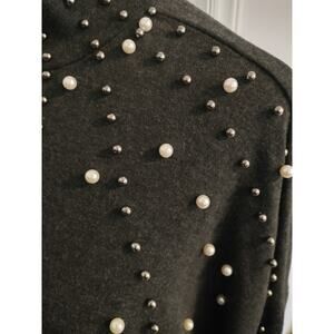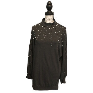 Women's Pearl Beaded Size Large Knit Gray Tunic Layers Maximalist Lagenlook Cute