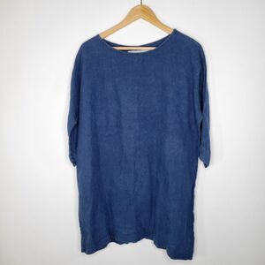NOT PERFECT LINEN Navy Blue Tunic Size S Boat Neck 3/4 Sleeve Lagenlook Modest
