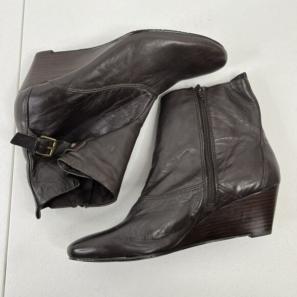 Nine West Size 11 Tulia Leather Wedge Bootie Ankle Boots Shoes Buckle Detail