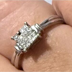 Zales /// Square Diamond Cluster Ring / Elegant Silver Ring