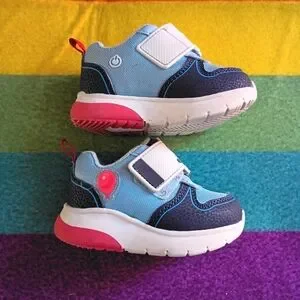 Ground Up Bluey size toddler 6 Keepy Uppy hook & loop/velcro light up sneakers with an on/off switch on each shoe. Both shoes light up on the bottom red areas and on the red balloons, *but the balloon on the left shoe does not light up reliably.* GUC for general wear. MSRP $22.98, not currently available on the website as of this listing.