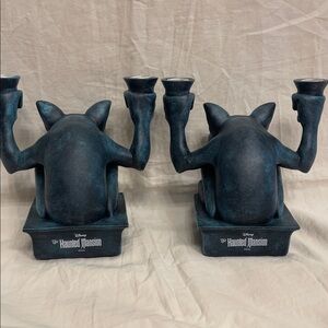 Disney Haunted Mansion gargoyle candle holders. Enchant your space with these Disney gargoyle candle holders. Perfect for a mystical touch. Brand new in box. Measure 7.5 inches tall by 8 inches wide.