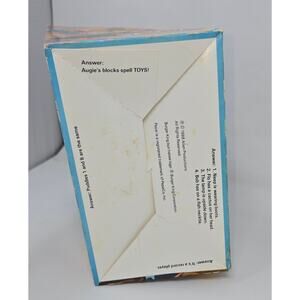 The cooking pot tag has been torn from the puppet but it can be glued back on as the tag is still attached. The puppet has mild wear from use and a couple small stains on the apron but it can be removed and washed. The box was used for a meal so it has some interior oil stains but the exterior is in good condition. The books are in good condition and the coloring book has not been read although the cover has a corner cutoff.