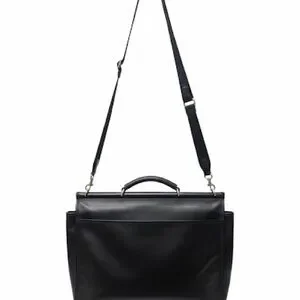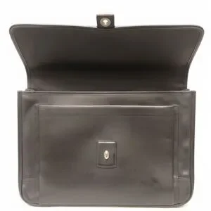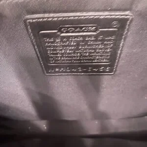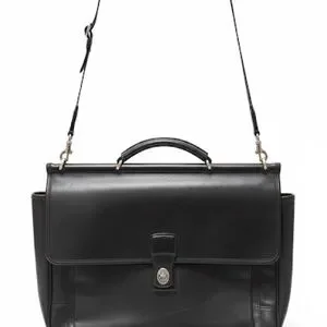Elevate your style with this classic black leather bag from Coach. Perfect for work or travel, it combines functionality with timeless elegance. A front pocket is excellent to keep a cell phone or other essentials within close reach. The main compartment is spacious and can accommodate most laptops. This bag did not come with a strap, so we are including a brand new Coach strap, which is reflected in the price.