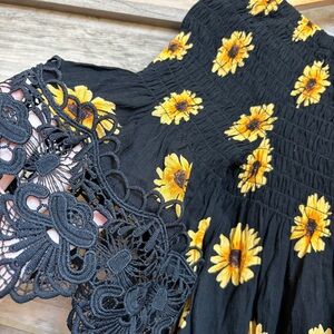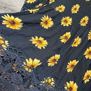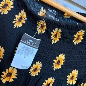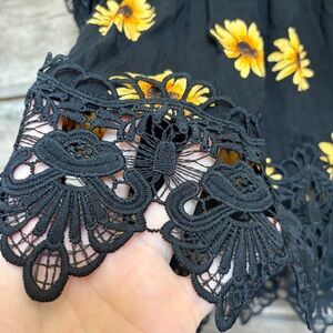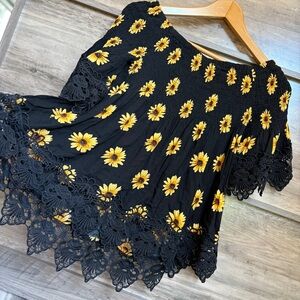 Rue21 Yellow Sunflower Floral Black Lace Flowy Blouse Top NWT Women's L