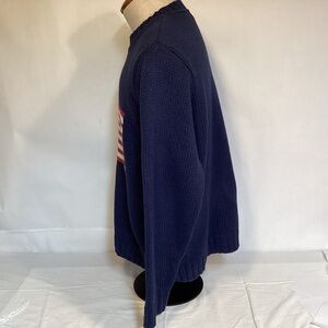 Navy crewneck American Flag sweater made in USA vintage 1990’s from Coldwater Creek Featuring bold flag design. Classic Americana sweater. Men’s size XL please see measurements