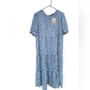 Pretty Garden Blue with White Polka Dot Long Dress Size Large