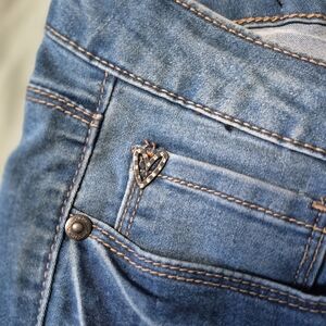 I estimate about a 6 to 8, they do stretch. Here comes boot season! You still need a couple pairs of skinny jeans in rotation to fit into your fall and winter boots! If you're like me, you just want to slide in and out of your boots and not have to tuck the pant leg in. YMI Love jeans go the extra mile eith cute details, the heart rivrt on the pocket, the love handwritting design on the interior pockets the leather tab on the back, with another rivet heart. cello jeans go the extra mile with the 90s acid wash look all in excellent pre loved condition.