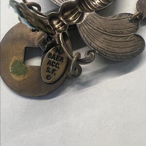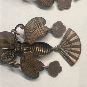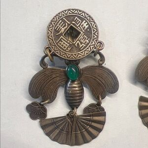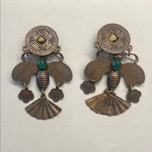 Artisan Bronze Earrings with Green Stone Accents VINTAGE
