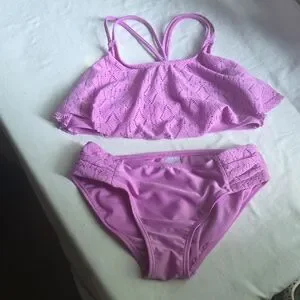 Chic lavender bikini set. Ideal for summer fun. There's a small orange stain on the inside of the top-not visible from the front