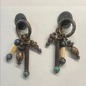 Artisan Bronze and Multicolor Dangle Earrings VINTAGE