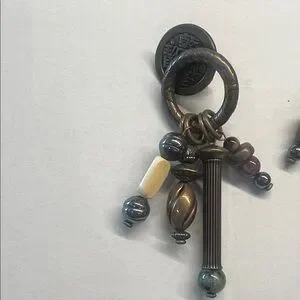 Elevate your style with these artisan dangle earrings featuring a stunning mix of bronze, cream, and blue tones. Perfect for adding a unique touch to any outfit.