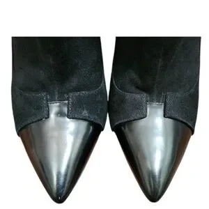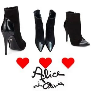 Alice & Olivia Dametrie suede & leather boots are sold out everywhere. These chic black suede heel boots with a stylish pointy glossy patent toe. High stiletto heel with Alice & Olivia trademark crisscross stitched heel for a bold look. Perfect for elevating any outfit. Boots have been worn one time. They are extremely comfortable to wear. Heel height 4.5” Sz 6