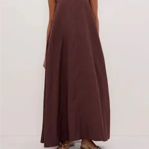 Chic walnut maxi skirt with a flowing A-line silhouette. Perfect for versatile styling. No longer available through DISSH.