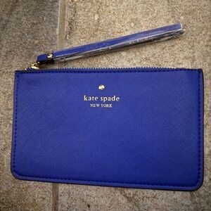 Brand new in package, Kate Spade blue leather wristlet. Wristlet is in plastic Kate Spade dustcover and Still has plastic wrap up on wristlet part. Retail price tag $88.00.