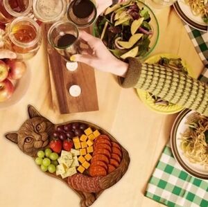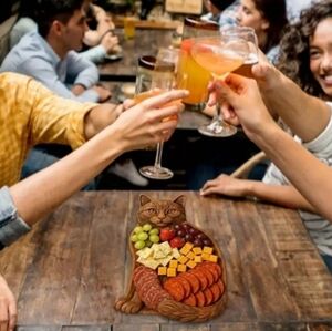 Serve your snacks in style with this charming wooden cat-shaped charcuterie board. Perfect for cat lovers, this board features a natural wood finish that adds a rustic touch to any gathering.