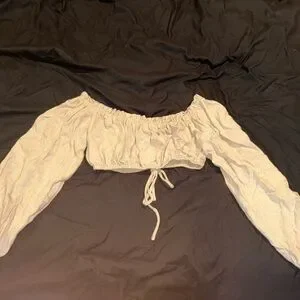 Elevate your style with this chic off-shoulder beige crop top. Perfect for any occasion. no size but fits like a small