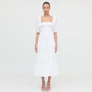 Corinne is made for baking pancakes from scratch from organic eggs that you plucked out of the chicken coop with a baby on your hip or, you know, catching the 1 train to midtown on a Thursday. Corinne is cottage core with just a little bit of attitude. We love the square neck and the easy midi sleeve.