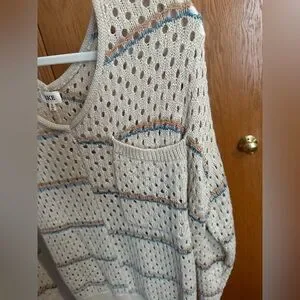 BKE Women's Cream and Blue V-Neck Sweater