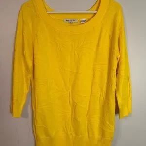 Eight Eight Eight Yellow Palm Leaf Sweater Women’s M 100% Cotton 3/4 Sleeve