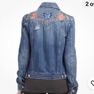 BLANK NYC Embroidered Floral Distressed Denim Jean Jacket Sz L