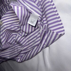 Stylish purple striped button-up shirt with long sleeves. Size 10 Petite. Stretch. Very nice shirt. Like new condition.