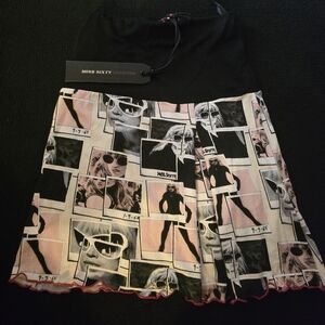 Miss Sixty Graphic Print Mini Skirt in Black and Pink. Sz. Xs