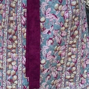Sage Green floral vine cotton fabric apron. Dark red ties/straps.