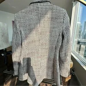 Zara Women's Black and White Tweed Blazer with Red Accents