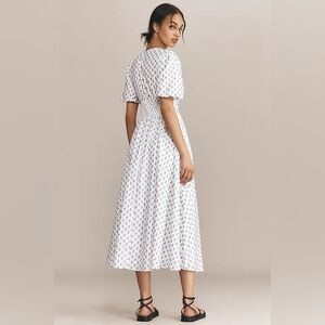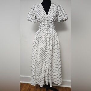 Anthropologie Womens Maxi Dress White/Navy Somerset Embroidered Floral