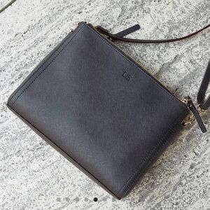 Shoulder strap is adjustable and designed to convert the bag from a crossbody to a shoulder bag or wristlet/clutch.
