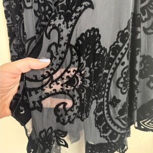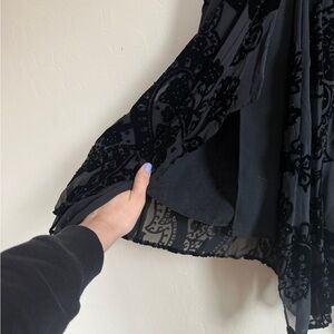 ECI Women Velvet Witchy Whimsigoth Chiffon Midi Black Split Handkerchief Skirt 8