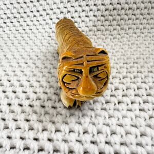 Vintage. Artesania Rinconada. 4" statue figuette of an orange prowling hunting walking tiger. Preowned in good condition with no chips or stains.